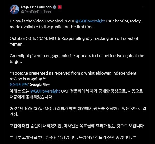 미국 UFO 청문회에서 하원의원이 새로운 동영상을 공개함 라카라카 0 558 0 09.12 02:51 link URL 복사: https://view.humorpick.com/bbs/board.php?bo_table=humor&wr_id=389273 이 문장이 보이면 video 태그를 지원 하지 않는 브라우저 입니다. 0
