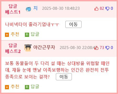 야생 햄스터의 위협 포즈 큐플레이 0 724 0 09.02 19:00 link URL 복사: https://view.humorpick.com/bbs/board.php?bo_table=humor&wr_id=388757 0