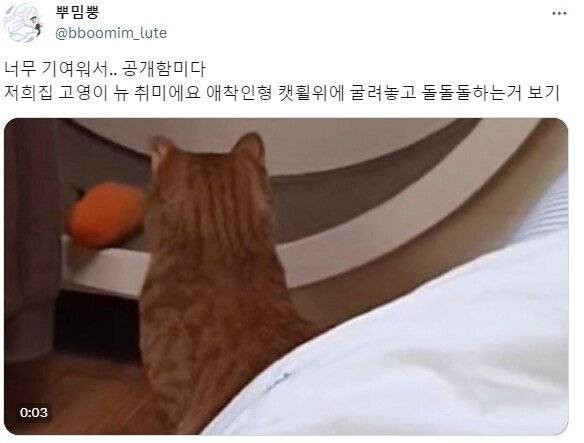 어느 고양이의 하찮은 취미 라카라카 0 636 0 08.23 06:17 link URL 복사: https://view.humorpick.com/bbs/board.php?bo_table=humor&wr_id=388285 이 문장이 보이면 video 태그를 지원 하지 않는 브라우저 입니다. 0