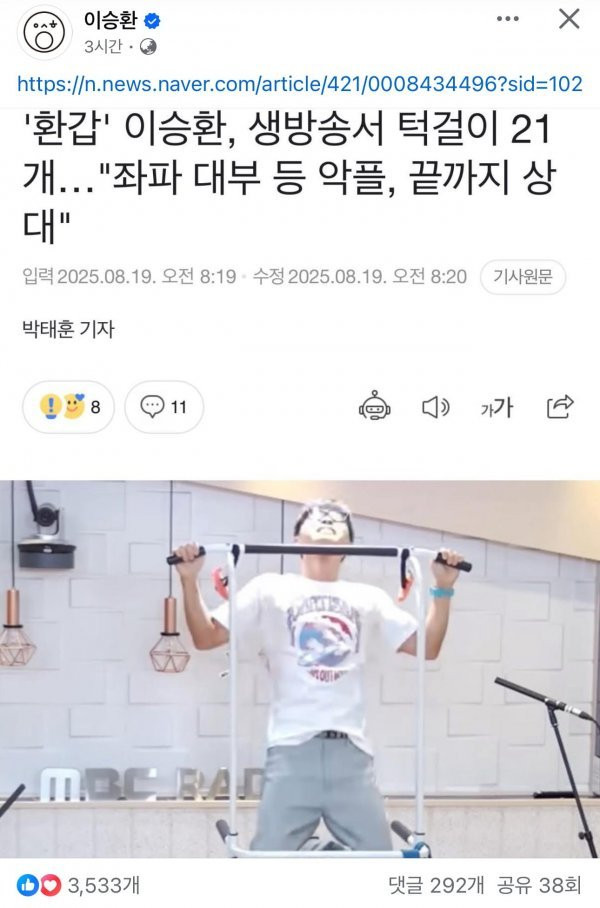 가수 이승환 근황ㄷㄷ.jpg 아기물티슈 0 755 0 08.22 02:17 link URL 복사: https://view.humorpick.com/bbs/board.php?bo_table=humor&wr_id=388173 이 문장이 보이면 video 태그를 지원 하지 않는 브라우저 입니다. 0