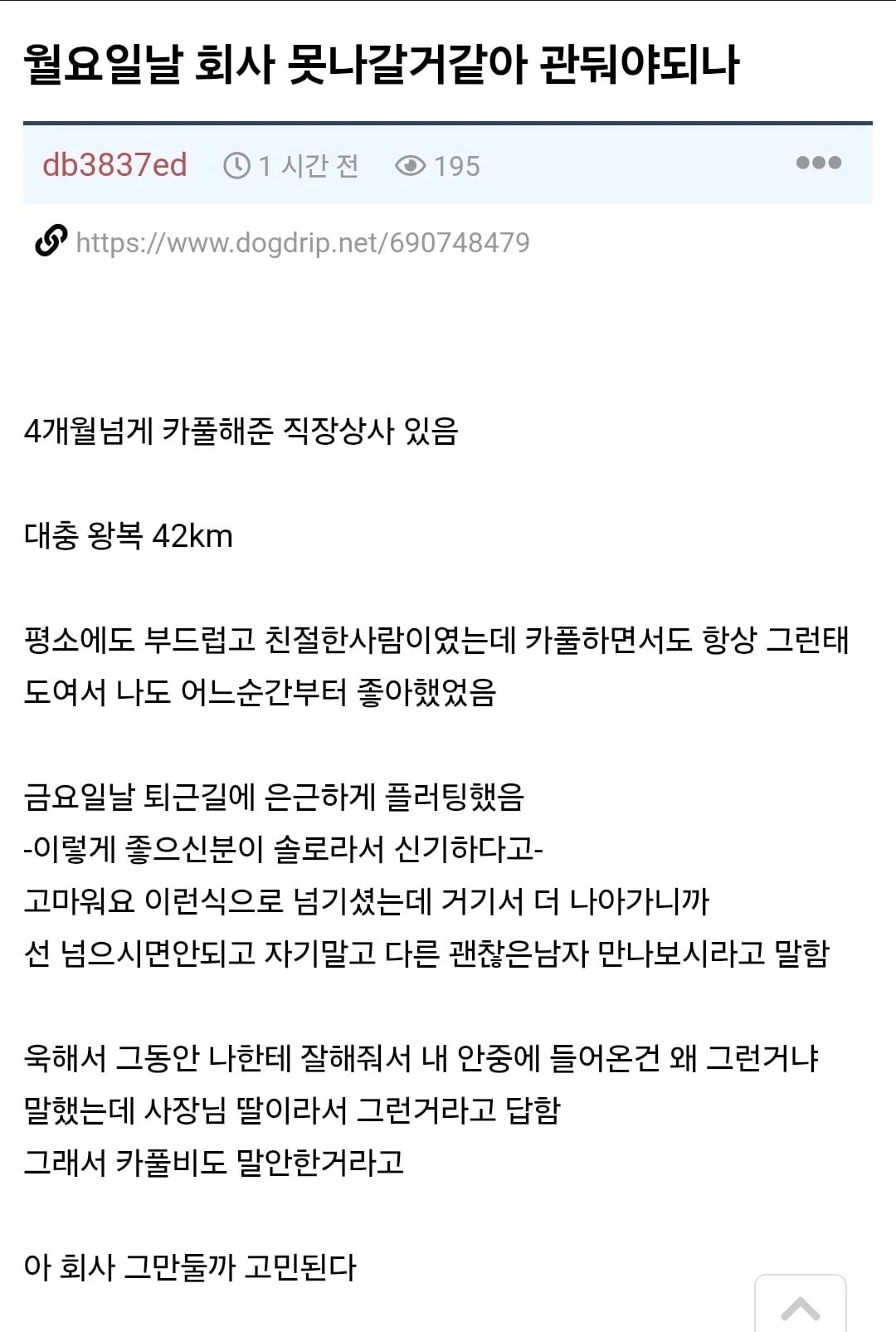 월요일날 회사 못나갈거같다는 사람 수민이에여 0 360 0 7시간전 link URL 복사: https://view.humorpick.com/bbs/board.php?bo_table=humor&wr_id=407120 0