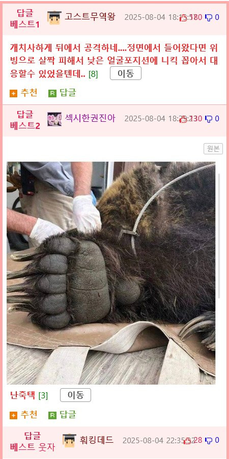 놀람주의)일본 곰 습격 한방에 갈비뼈 6대 나감 포트리쯔 0 775 0 08.08 00:00 link URL 복사: https://view.humorpick.com/bbs/board.php?bo_table=humor&wr_id=387427 0