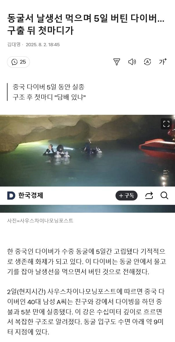 (중국) 동굴서 날생선 먹으며 5일 버틴 다이버…구출 뒤 첫마디가.jpg 아라셀리 0 832 0 08.07 09:17 link URL 복사: https://view.humorpick.com/bbs/board.php?bo_table=humor&wr_id=387368 0