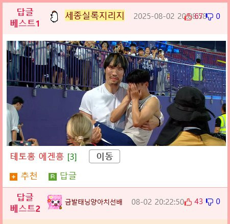 손홍만 들고 둥가둥가 하는 최흥민 라이츄 0 712 0 08.06 18:51 link URL 복사: https://view.humorpick.com/bbs/board.php?bo_table=humor&wr_id=387310 이 문장이 보이면 video 태그를 지원 하지 않는 브라우저 입니다.이 문장이 보이면 video 태그를 지원 하지 않는 브라우저 입니다. 0