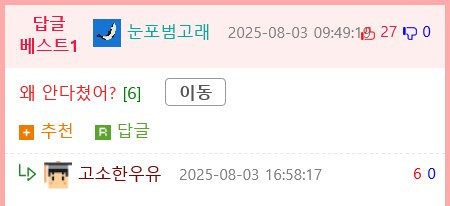 ㅇㅎ) 남자가 여자의 유혹에 안넘어가는 타이밍 수민이에여 0 1033 0 08.06 14:34 link URL 복사: https://view.humorpick.com/bbs/board.php?bo_table=humor&wr_id=387293 0