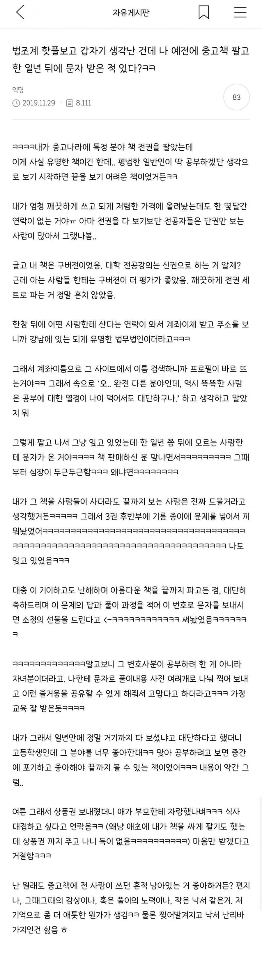 중고책 판매하고 1년 후에 받은 문자.jpg 아기물티슈 0 668 0 07.03 21:17 link URL 복사: https://view.humorpick.com/bbs/board.php?bo_table=humor&wr_id=385588 이 문장이 보이면 video 태그를 지원 하지 않는 브라우저 입니다. 0