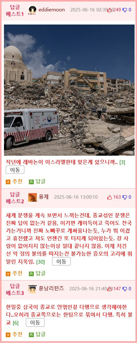 이스라엘 VS 이란 구경하는 레바논 근황 픽시베이 0 1066 0 06.19 20:17 link URL 복사: https://view.humorpick.com/bbs/board.php?bo_table=humor&wr_id=384550 0
