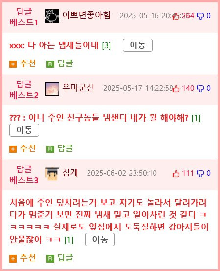 주인이 강도(?)당하는걸 본 댕댕이 칠성그룹 0 901 0 06.05 13:34 link URL 복사: https://view.humorpick.com/bbs/board.php?bo_table=humor&wr_id=383325 0