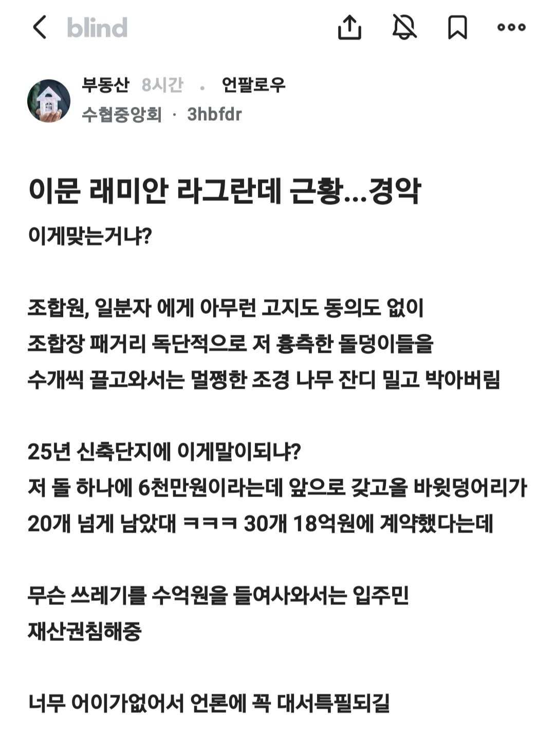 얼마전 어느 신축 아파트 조합이 벌인 일 몽둥이 0 816 0 05.29 15:51 link URL 복사: https://view.humorpick.com/bbs/board.php?bo_table=humor&wr_id=382745 0
