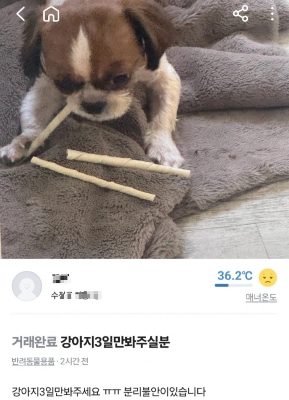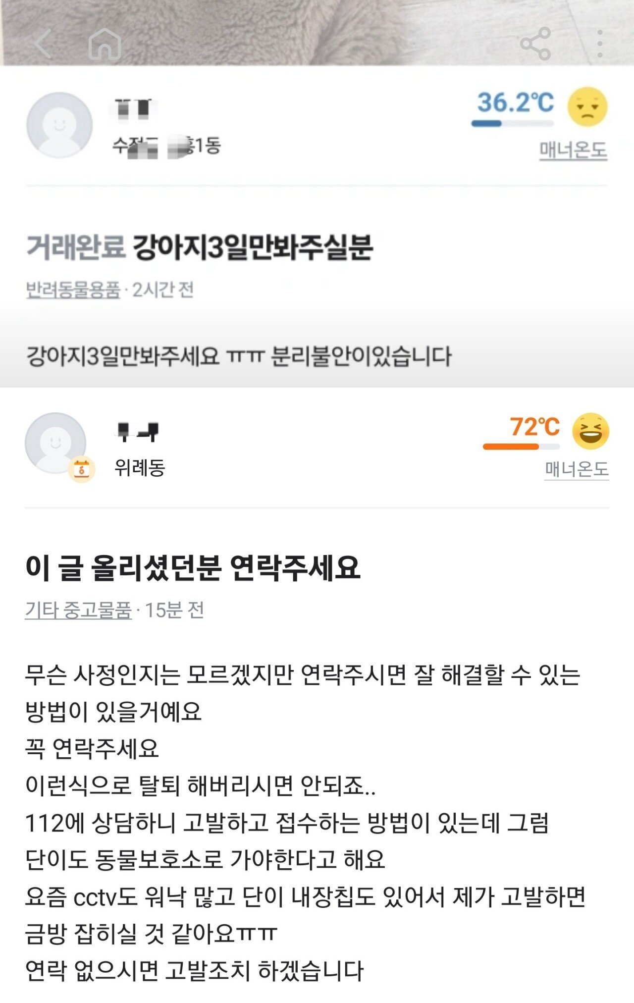 당근마켓에 강아지 유기한 사람 라카라카 0 853 0 05.27 20:34 link URL 복사: https://view.humorpick.com/bbs/board.php?bo_table=humor&wr_id=382572 이야…진짜 저런 인간같지도 않은… 0