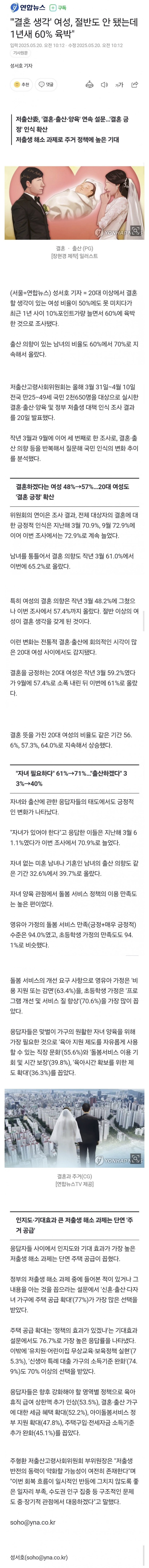 "'결혼 생각' 여성, 절반도 안 됐는데 1년새 60% 육박" 라이츄 0 797 0 05.27 10:34 link URL 복사: https://view.humorpick.com/bbs/board.php?bo_table=humor&wr_id=382531 https://n.news.naver.com/mnews/article/001/0015399252 0