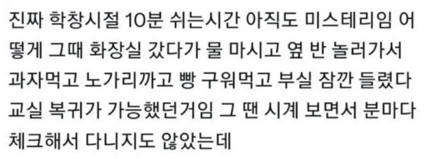 학창시절 쉬는시간 10분 아직도 미스테리임 우라칸 0 1377 0 05.27 02:17 link URL 복사: https://view.humorpick.com/bbs/board.php?bo_table=humor&wr_id=382498 0