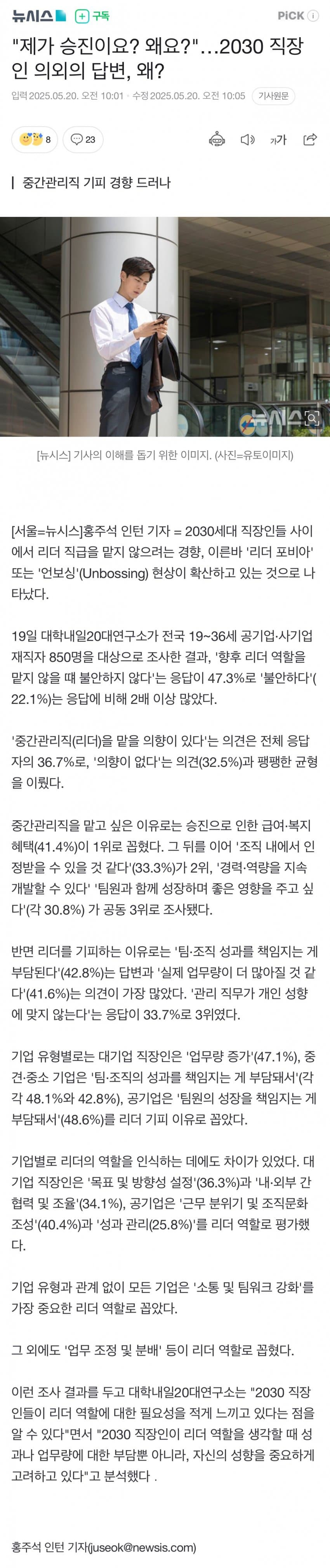 "제가 승진이요? 왜요?"…2030 직장인 의외의 답변, 왜? 큐플레이 0 861 0 05.27 02:51 link URL 복사: https://view.humorpick.com/bbs/board.php?bo_table=humor&wr_id=382500 https://naver.me/FlcyFd67 0