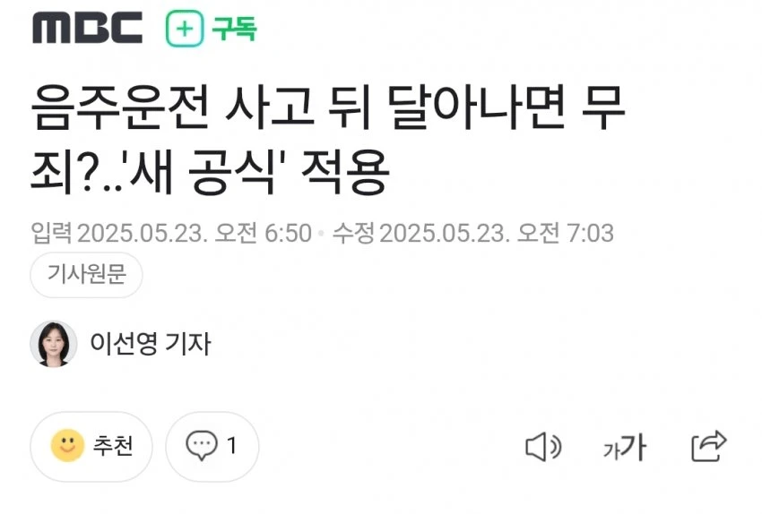 음주운전 사고 뒤 달아나면 무죄? '새 공식' 적용 큐플레이 0 730 0 05.25 02:00 link URL 복사: https://view.humorpick.com/bbs/board.php?bo_table=humor&wr_id=382305 https://n.news.naver.com/mnews/article/214/0001425893 = n뉴스 0