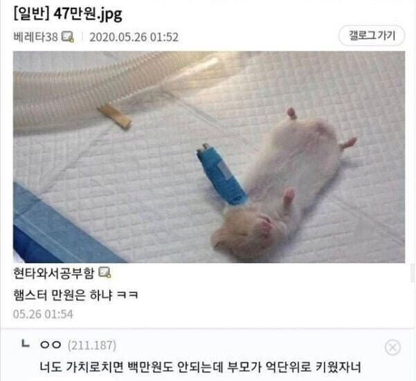 47만원짜리 햄스터 수술 포트리쯔 0 1031 0 05.23 10:28 link URL 복사: https://view.humorpick.com/bbs/board.php?bo_table=humor&wr_id=382067 0