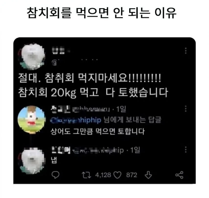 참치회를 먹으면 안 되는 이유 버디버디 0 885 0 05.23 10:23 link URL 복사: https://view.humorpick.com/bbs/board.php?bo_table=humor&wr_id=381968 0