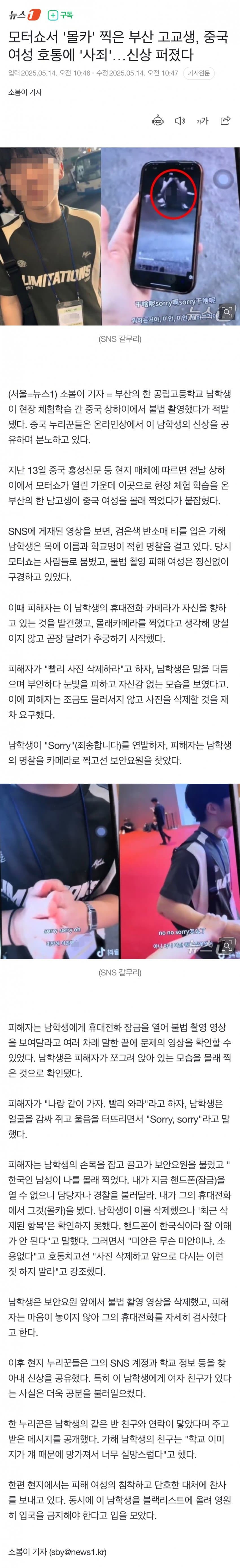 모터쇼서 몰카 찍은 부산 고교생, 중국 여성 호통에 사죄..신상 퍼졌다 오크대장 0 829 0 05.16 10:54 link URL 복사: https://view.humorpick.com/bbs/board.php?bo_table=humor&wr_id=381223 https://naver.me/5lfiSZs1 0