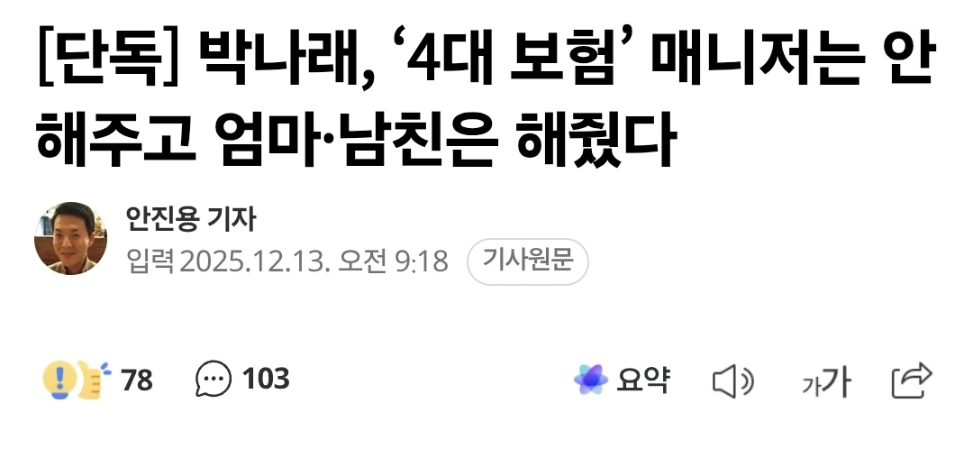 박나래, ‘4대 보험’ 매니저는 안 해주고 엄마·남친은 해줬다 오크대장 0 93 0 4시간전 link URL 복사: https://view.humorpick.com/bbs/board.php?bo_table=humor&wr_id=397373 점점 실체가 0
