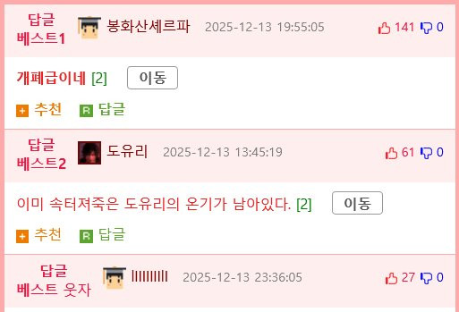 보고있으면 속 터지는 영상 몽둥이 0 368 0 7시간전 link URL 복사: https://view.humorpick.com/bbs/board.php?bo_table=humor&wr_id=397400 0