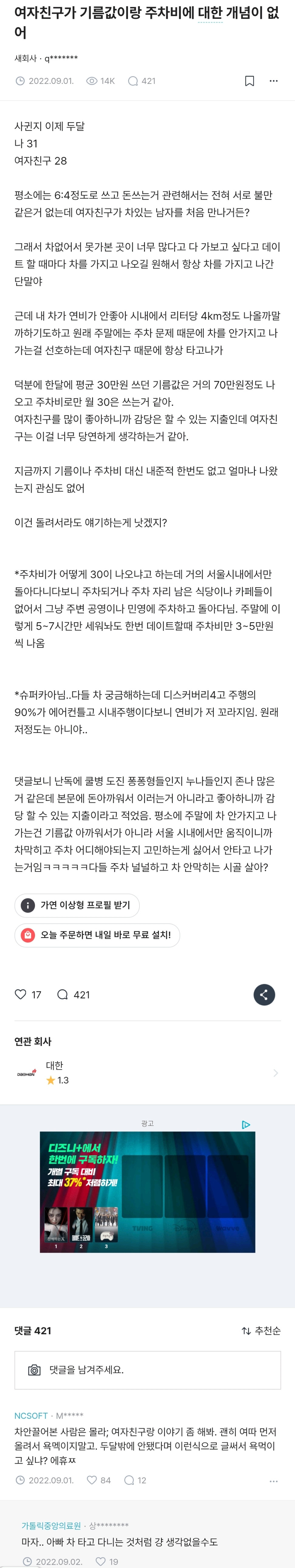 여친이 기름값이랑 주차비에 대한 개념이 없어 아기물티슈 0 281 0 2시간전 link URL 복사: https://view.humorpick.com/bbs/board.php?bo_table=humor&wr_id=397960 0