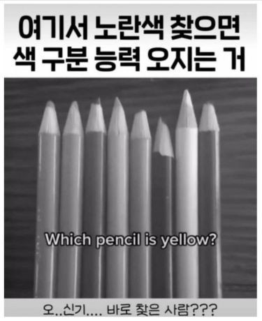 여기서 노란색 찾으면 색 구분 능력 오지는 거 오크대장 0 255 0 2시간전 link URL 복사: https://view.humorpick.com/bbs/board.php?bo_table=humor&wr_id=397994 0