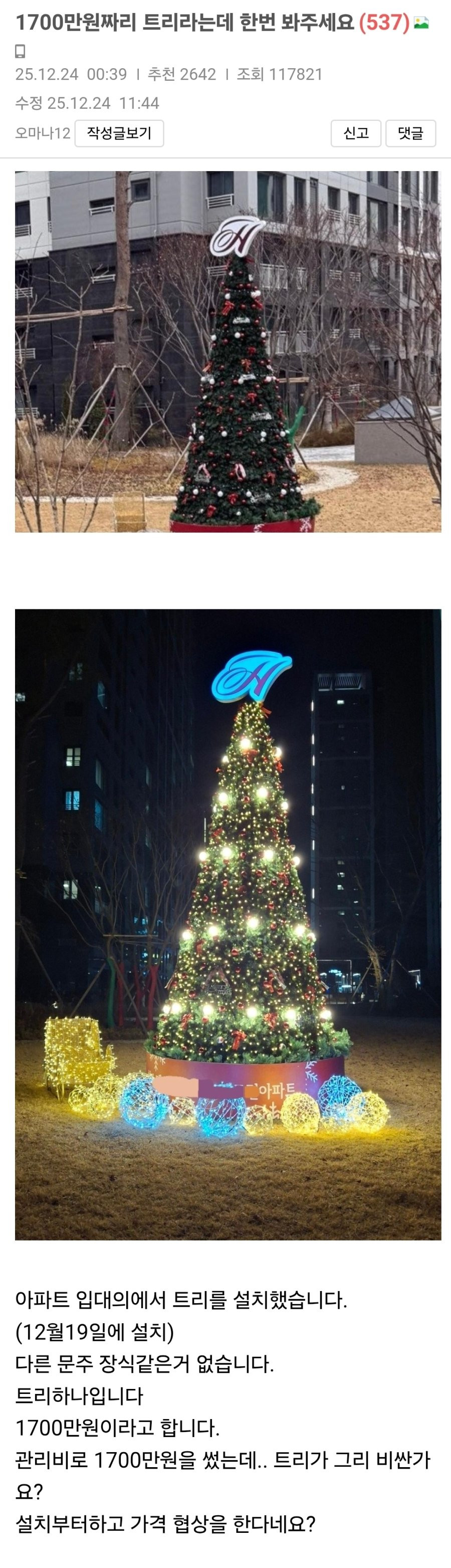 어느 아파트의 1,700만원짜리 트리 ㄷㄷ 김밤비 0 196 0 2시간전 link URL 복사: https://view.humorpick.com/bbs/board.php?bo_table=humor&wr_id=398287 0