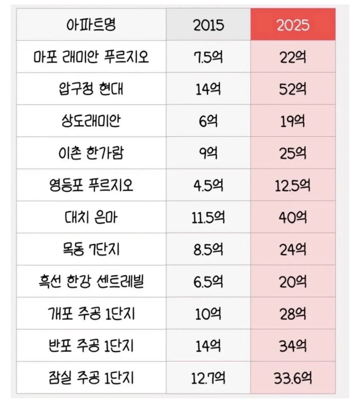 2015년과 2025년 아파트 시세 비교 슬라임 0 328 0 2시간전 link URL 복사: https://view.humorpick.com/bbs/board.php?bo_table=humor&wr_id=398615 0