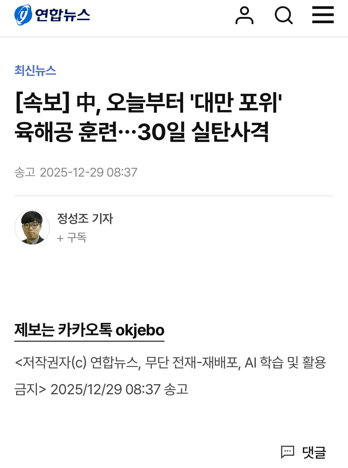 中, 오늘부터 '대만 포위' 육해공 훈련…30일 실탄사격 김밤비 0 298 0 2시간전 link URL 복사: https://view.humorpick.com/bbs/board.php?bo_table=humor&wr_id=398636 [속보] 中, 오늘부터 '대만 포위' 육해공 훈련…30일 실탄사격 | 연합뉴스 https://www.yna.co.kr/view/AKR20251229023300083 0
