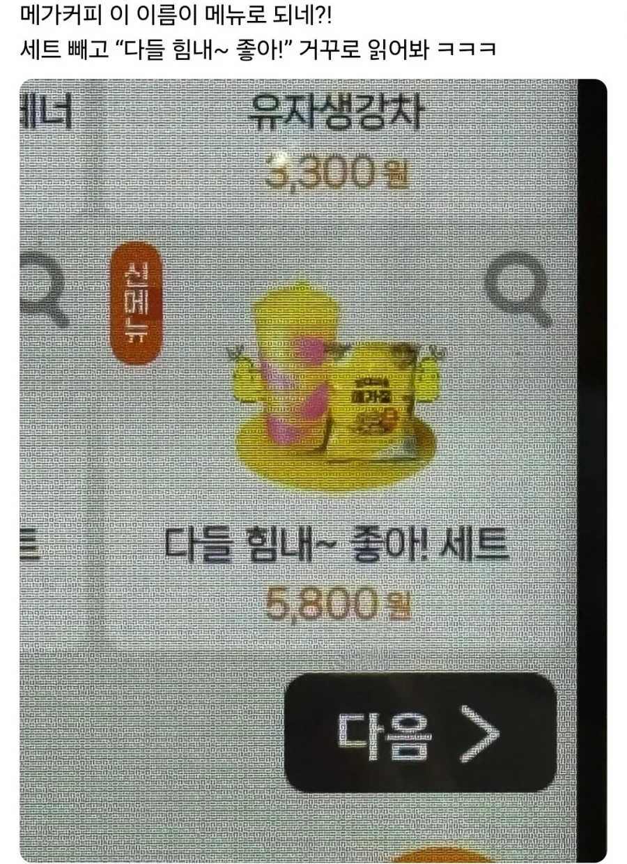 메가커피 메뉴 이름에 숨겨진 비밀 버디버디 0 248 0 2시간전 link URL 복사: https://view.humorpick.com/bbs/board.php?bo_table=humor&wr_id=398731 0