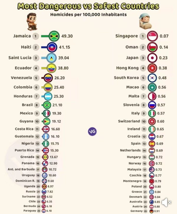 세상에서 제일 안전한 나라와 치안이 불안한 나라들 리스트 버디버디 0 285 0 01.04 17:00 link URL 복사: https://view.humorpick.com/bbs/board.php?bo_table=humor&wr_id=399031 한국은 안전한 나라편에서 세계 5등으로 발표됐군요 0