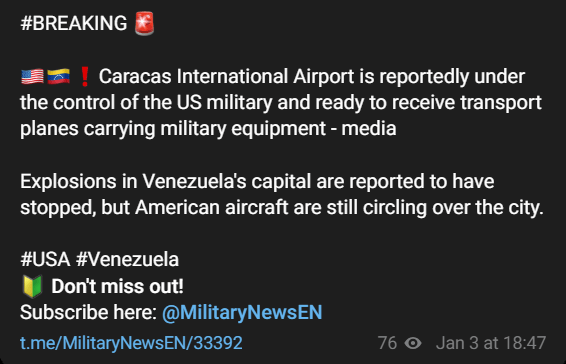 사상자 0명인 전쟁 몽둥이 0 146 0 20시간전 link URL 복사: https://view.humorpick.com/bbs/board.php?bo_table=humor&wr_id=399353 사상자 0명인 전쟁 미국이 베네수엘라 카라카스 국제공항 점령 마두로 대통령 체포까지 단 3시간 0