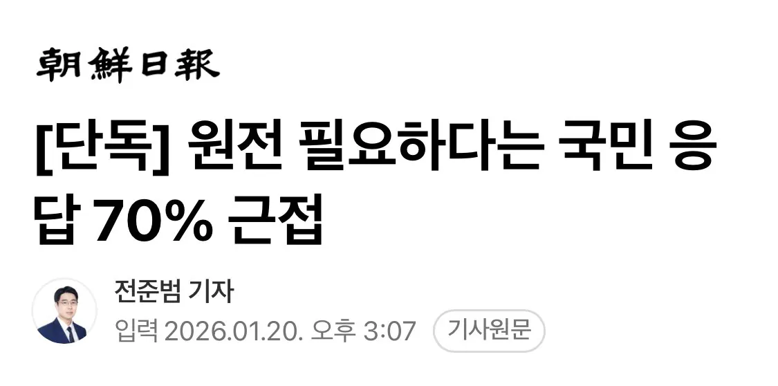 [여론조사] 대한민국 원전 인식 근황 버디버디 0 182 0 1시간전 link URL 복사: https://view.humorpick.com/bbs/board.php?bo_table=humor&wr_id=400151 https://n.news.naver.com/article/023/0003954117 원전 건설 찬성 70%, 안전하다 60% 0