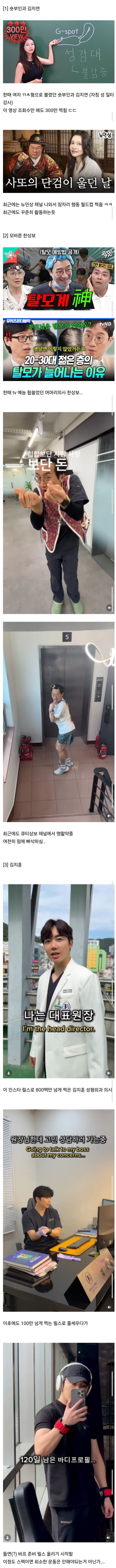 인플루언서 의사들의 근황 모음.jpg (숏부인과 김지연, 모바른한상보, 김지훈, 쭈쭈형 황인성, 박용민한의사) 아기물티슈 0 260 0 2시간전 link URL 복사: https://view.humorpick.com/bbs/board.php?bo_table=humor&wr_id=400199 0
