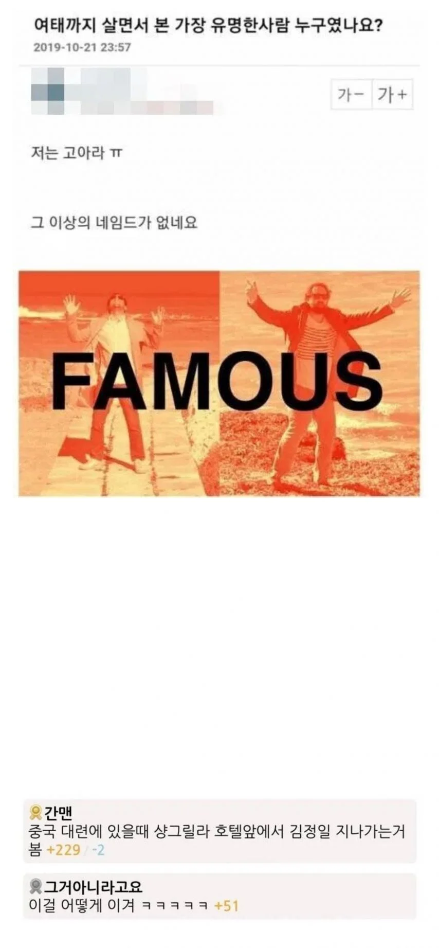 여태까지 살면서 본 가장 유명한 사람 누구였음? 픽시베이 0 205 0 2시간전 link URL 복사: https://view.humorpick.com/bbs/board.php?bo_table=humor&wr_id=400240 0