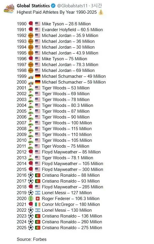 최근 36년간 스포츠선수 연 수입 1위 버디버디 0 224 0 2시간전 link URL 복사: https://view.humorpick.com/bbs/board.php?bo_table=humor&wr_id=400508 0