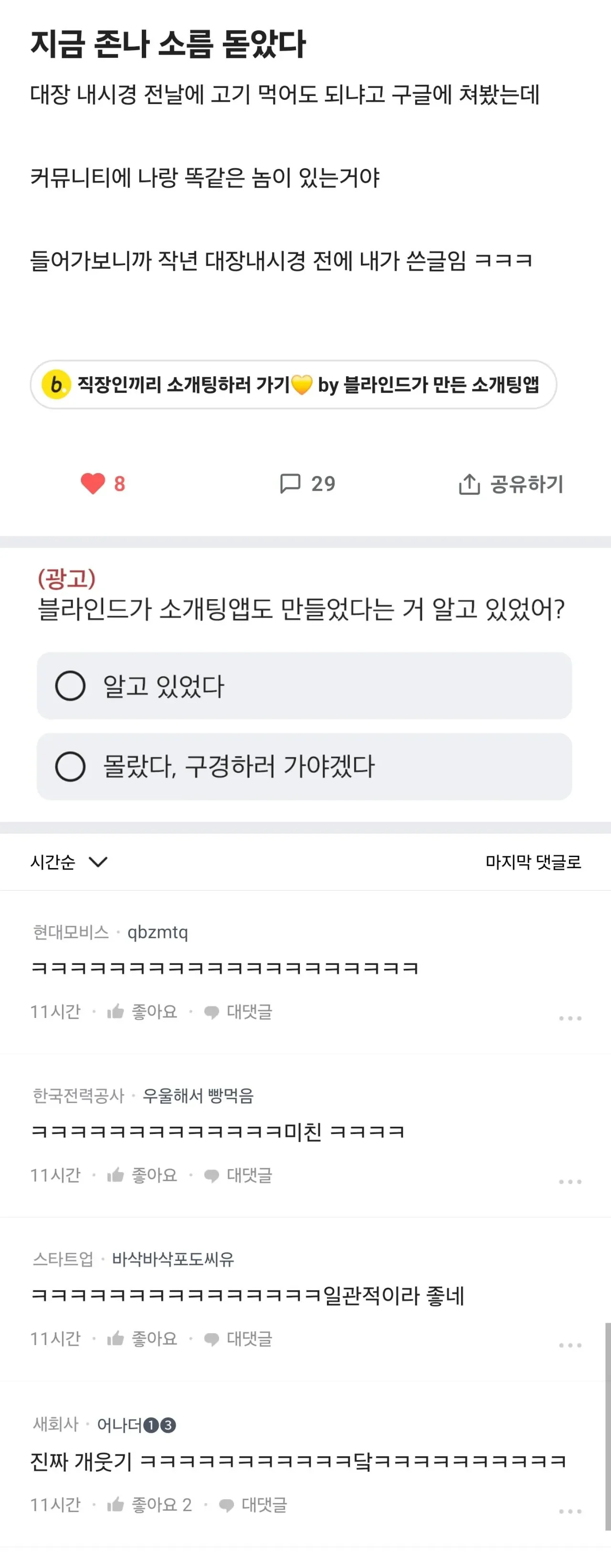 대장내시경 전에 소름돋았다는 블라남 아기물티슈 0 264 0 1시간전 link URL 복사: https://view.humorpick.com/bbs/board.php?bo_table=humor&wr_id=400844 0