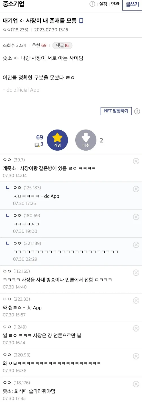 꽤나 정확하다는 대기업 vs 중소기업 구분법 아기물티슈 0 314 0 2시간전 link URL 복사: https://view.humorpick.com/bbs/board.php?bo_table=humor&wr_id=401674 0
