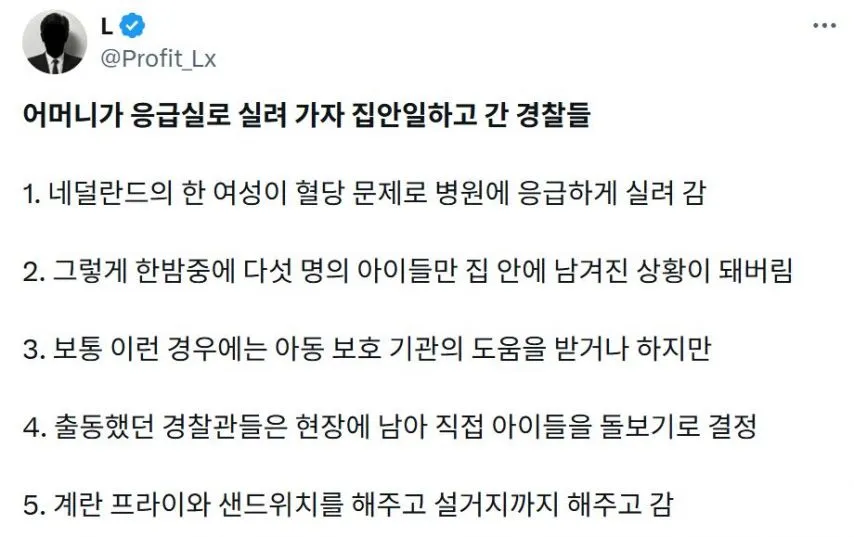 어머니가 응급실로 실려 가자 집안일하고 간 경찰들.jpg 슬라임 0 68 0 2시간전 link URL 복사: https://view.humorpick.com/bbs/board.php?bo_table=humor&wr_id=401903 0