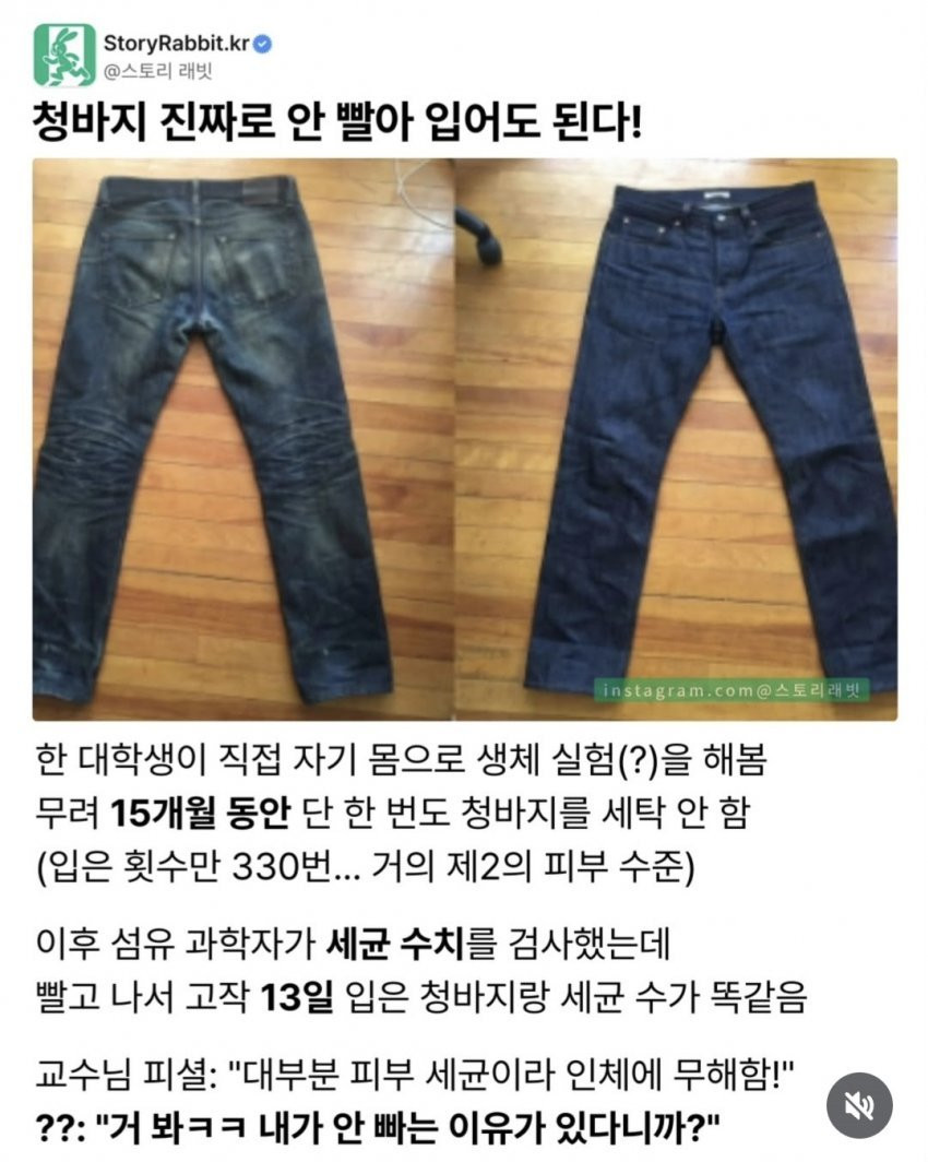 안 빨아입어도 되는 바지...(ㅇㅎ짤 있음) 버디버디 0 274 0 2시간전 link URL 복사: https://view.humorpick.com/bbs/board.php?bo_table=humor&wr_id=402107 냄새는 어쩔건데...=_= 0