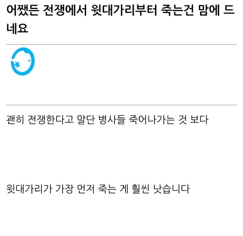 그나마 이번 전쟁이 나은 부분.jpg 큐플레이 0 362 0 03.04 21:51 link URL 복사: https://view.humorpick.com/bbs/board.php?bo_table=humor&wr_id=404251 그나마 덜 졷같은 부분.. 전두환이 1980년5월 저렇게 교체되었다면 어땠을까 가 떠올랐습니다. 한편으론 남의 힘으로 얻은 민주화가 현재만큼이라도 제대로 기능했을까도 싶고... 0