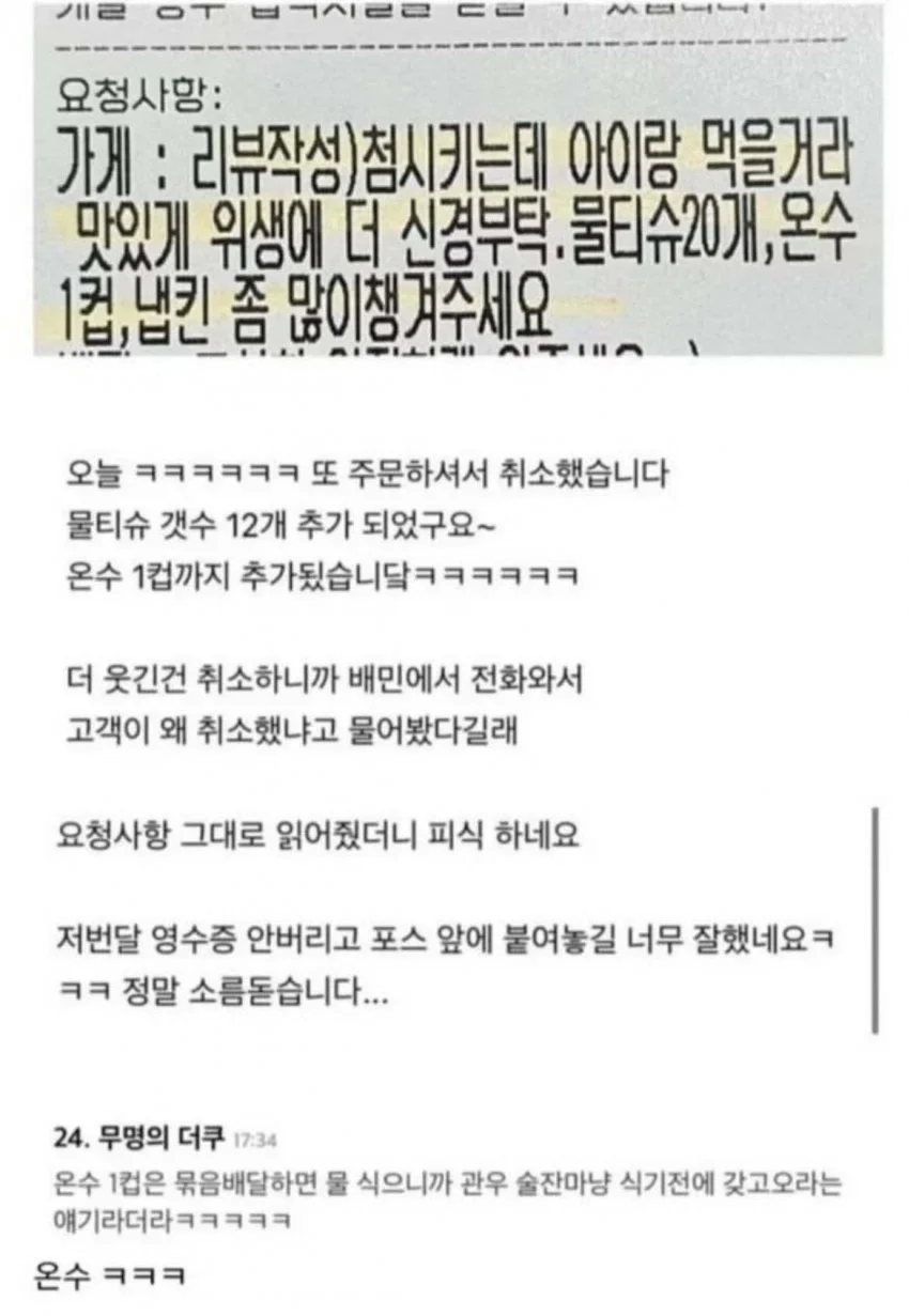 진상이 요구한 배달 주문 ㄷㄷ.jpg 아기물티슈 0 283 0 2시간전 link URL 복사: https://view.humorpick.com/bbs/board.php?bo_table=humor&wr_id=406885 0