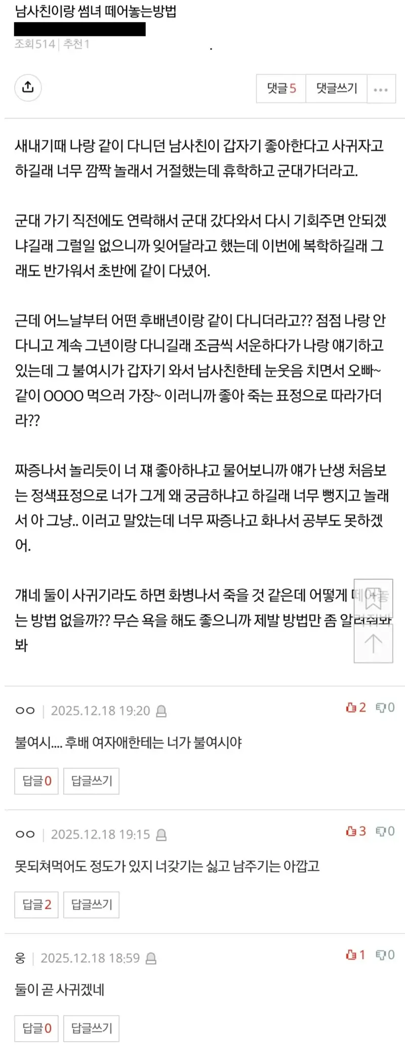 남사친이랑 썸녀 떼어놓는 방법 알려줘 Pixel 0 199 0 1시간전 link URL 복사: https://view.humorpick.com/bbs/board.php?bo_table=humor&wr_id=407777 0