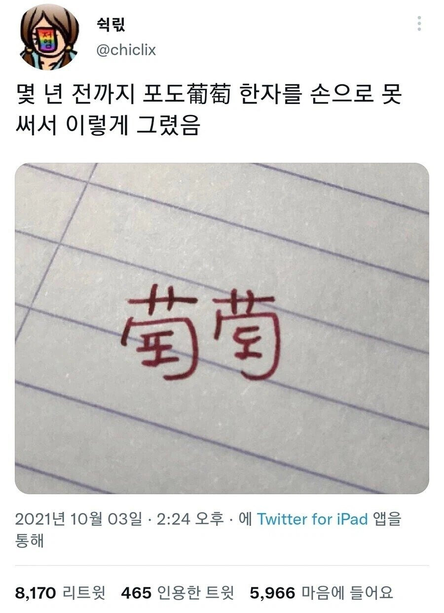 한자문화권 모두가 속을만한 글자 푸른바다 0 127 0 2시간전 link URL 복사: https://view.humorpick.com/bbs/board.php?bo_table=humor&wr_id=407995 (펌주: 형성자 원칙은 일부 충족하네...) 0