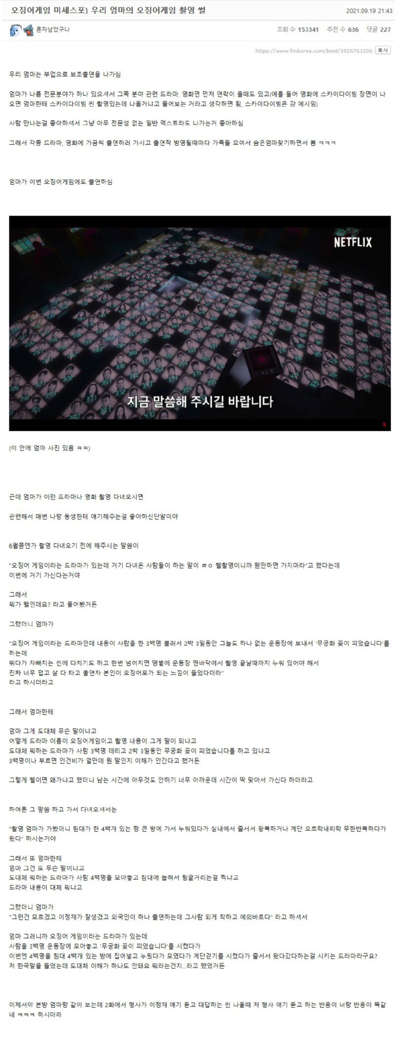 오징어게임 엑스트라 알바하신 엄마 썰 아라셀리 0 886 0 08.26 12:00 link URL 복사: https://view.humorpick.com/bbs/board.php?bo_table=ssul&wr_id=666 이 문장이 보이면 video 태그를 지원 하지 않는 브라우저 입니다. 0