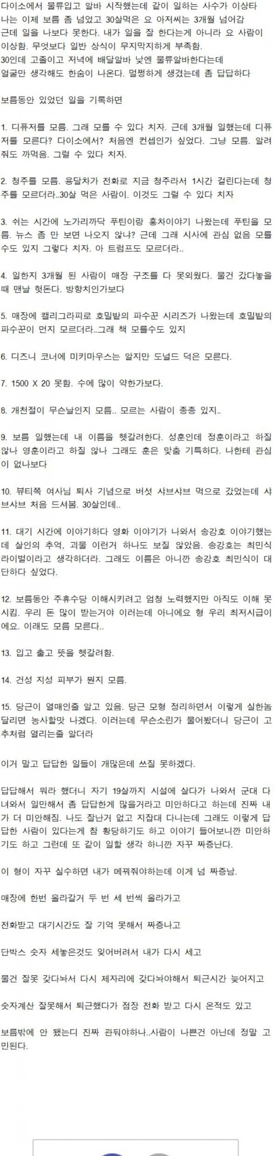 답답한 형님과 알바한 썰 아기물티슈 0 211 0 2시간전 link URL 복사: https://view.humorpick.com/bbs/board.php?bo_table=ssul&wr_id=1644 0